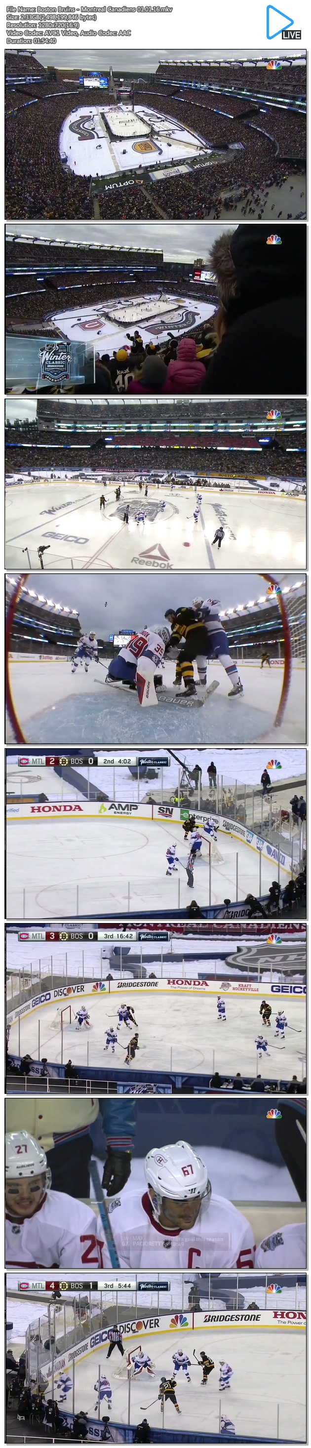 Boston Bruins - Montreal Canadiens 01.01.16.mkv 2.3 G MKV 01:54:40 1280x720
