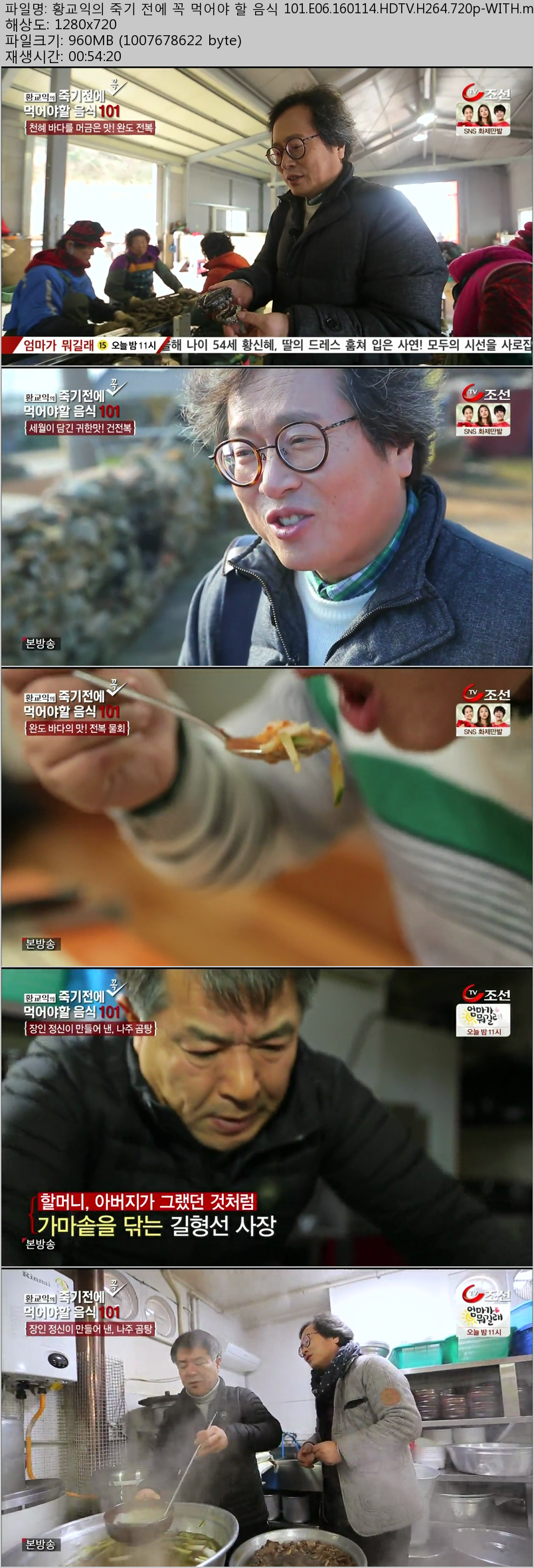 황교익의 죽기 전에 꼭 먹어야 할 음식 101.E06.160114.HDTV.H264.720p-WITH