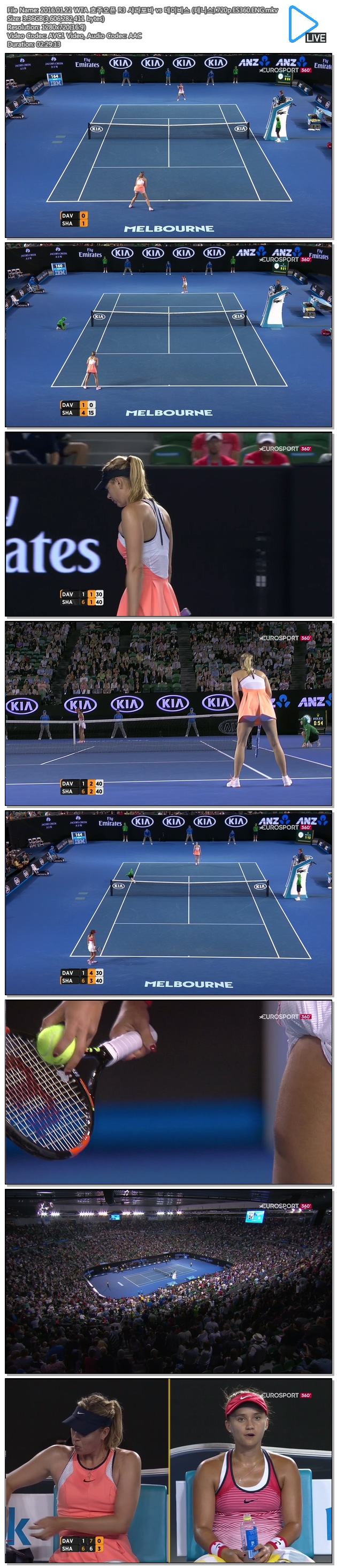 테니스 WTAP _ 2016.01.22 WTA 호주오픈 R3 샤라포바 vs 데이비스 스포츠/