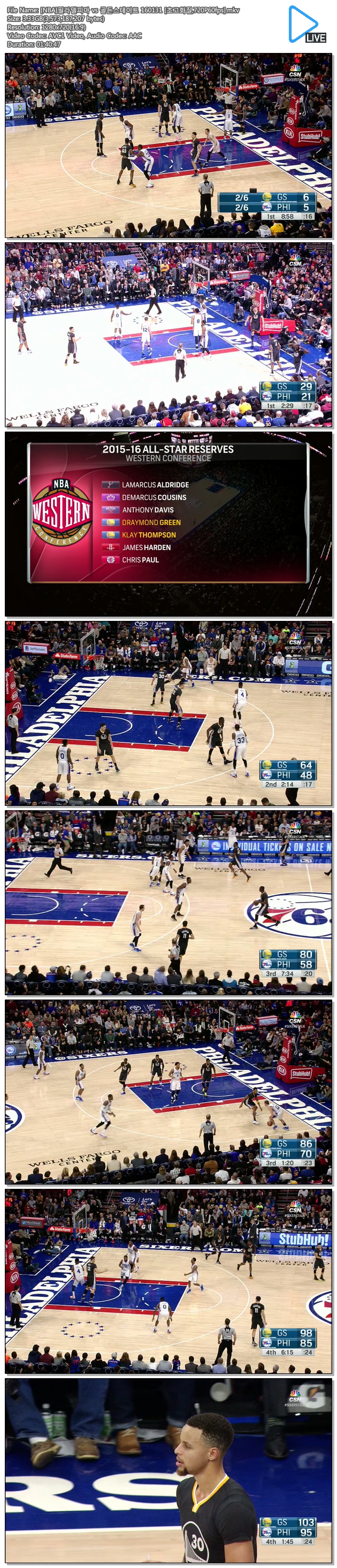 [NBA]필라델피아 vs 골든스테이트 160131 [초고화질,720P60fps].mkv