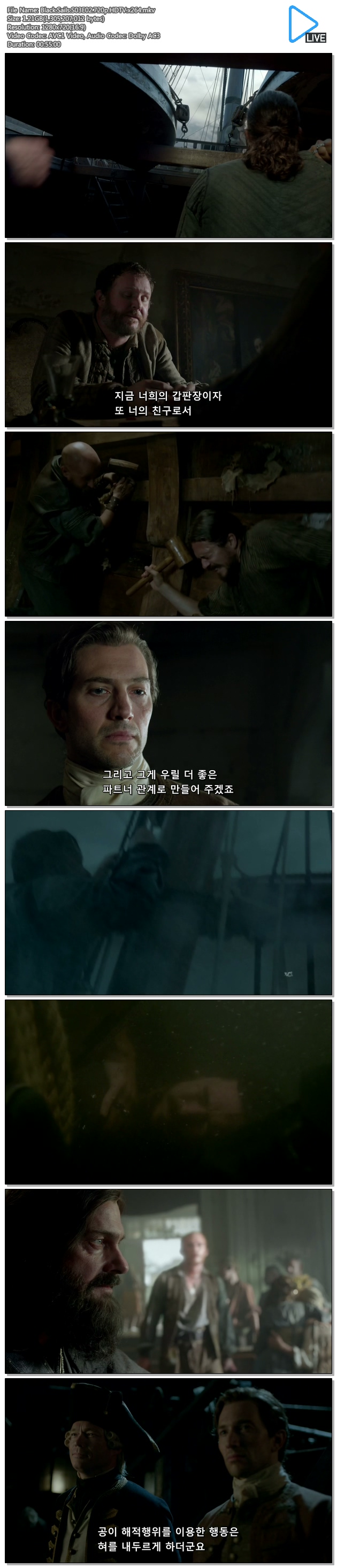 [블랙세일즈] (Black Sails) 시즌3 02화 통합자막/