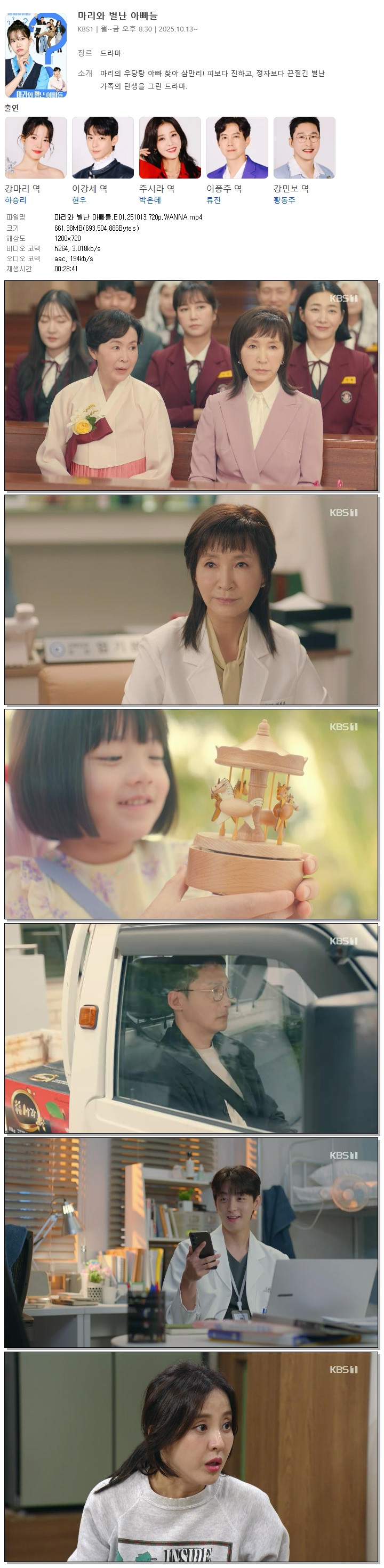 [KBS1] 마리와 별난 아빠들.E01.251013.720p.WANNA[하승리, 현우]