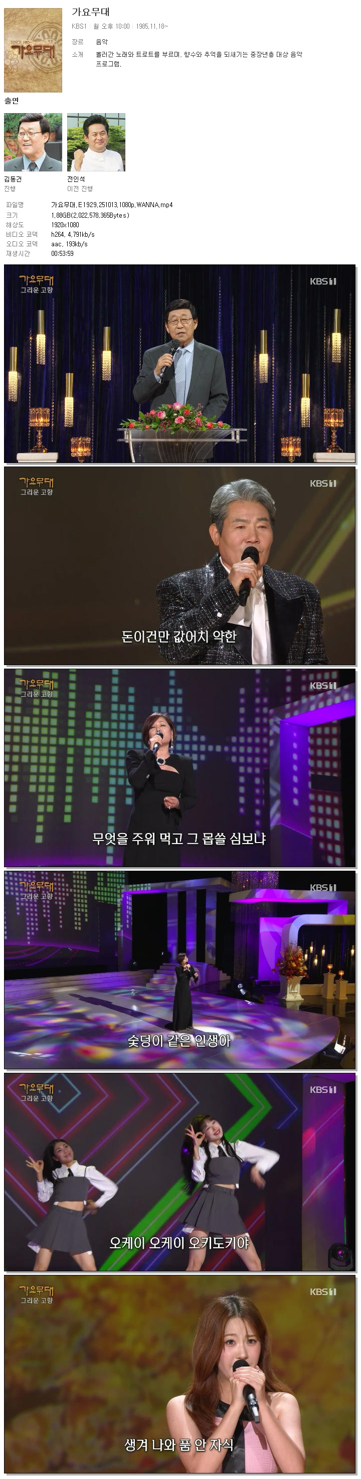 [KBS1] 가요무대.E1929.251013.1080p.WANNA[진성, 안성훈]