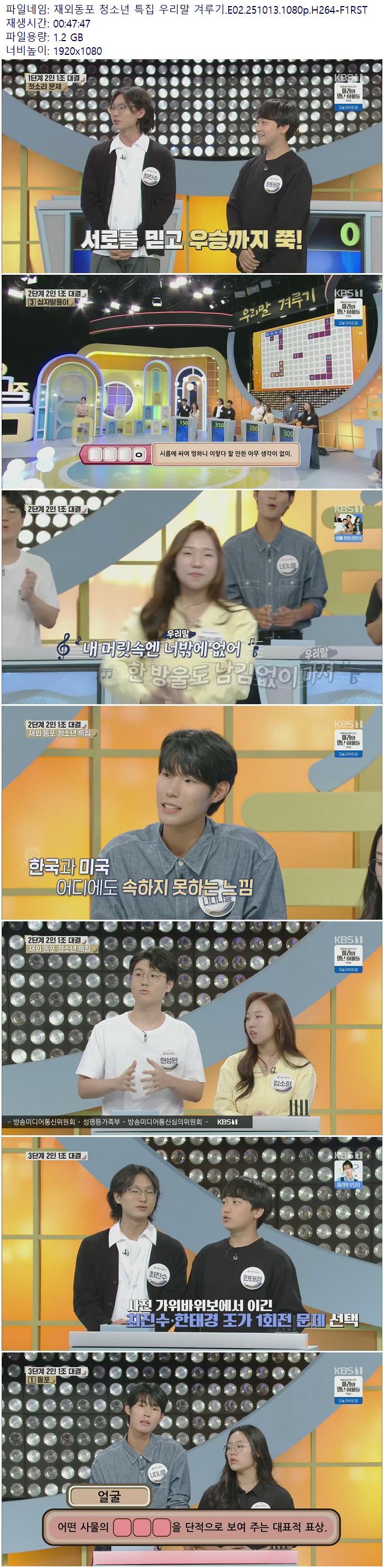 재외동포 청소년 특집 우리말 겨루기.E02.251013.1080p.H264-F1RST
