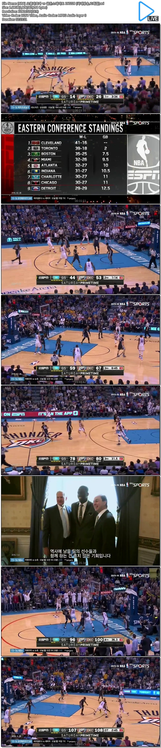 [NBA] 오클라호마 vs 골든스테이트 160228 [국내방송,고화질].avi