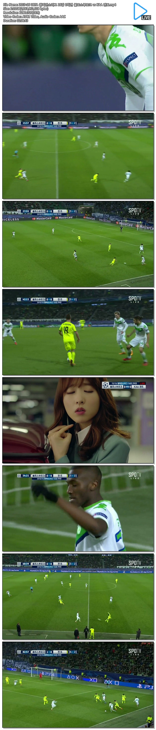 [챔스] 16강 2차전 볼프스부르크 vs 헨트 (16.03.09) 국내 고화질/