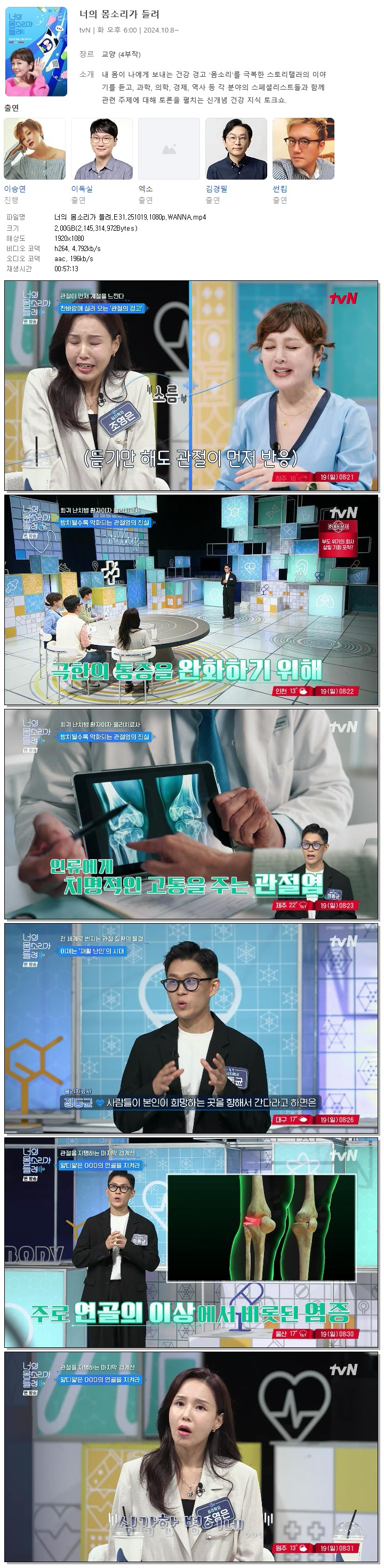 [TVN] 너의 몸소리가 들려.E31.251019.1080p.WANNA[이승연, 이독실]