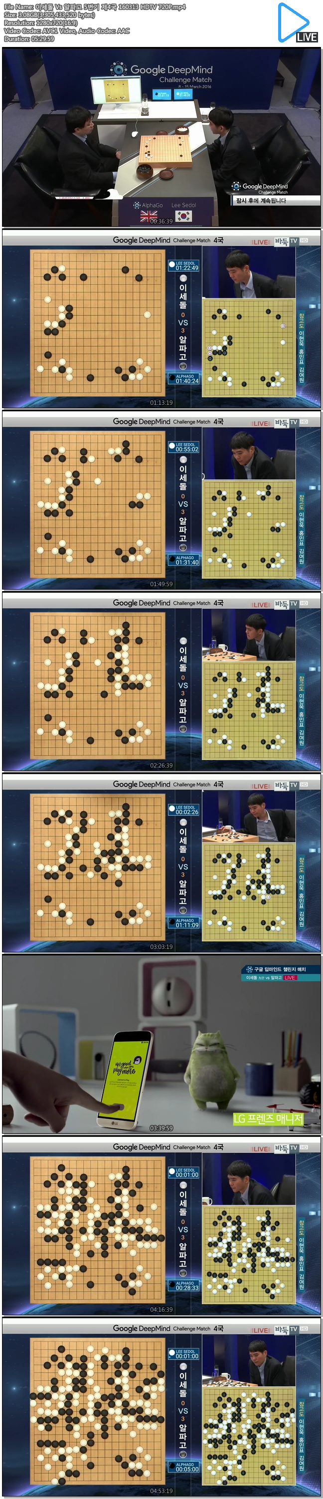 이세돌 Vs 알파고 5번기 제4국 대국실황중계 160313 HDTV 720P mp4