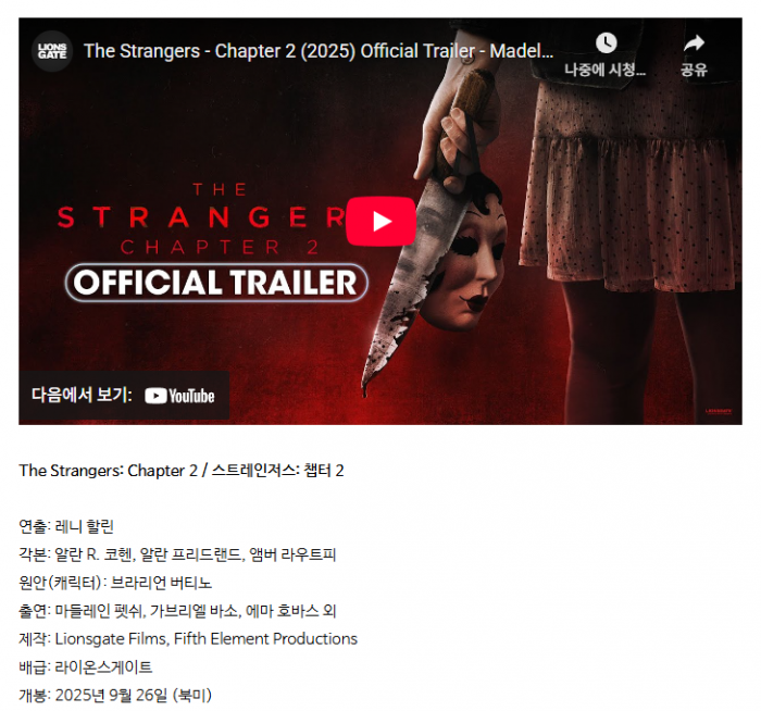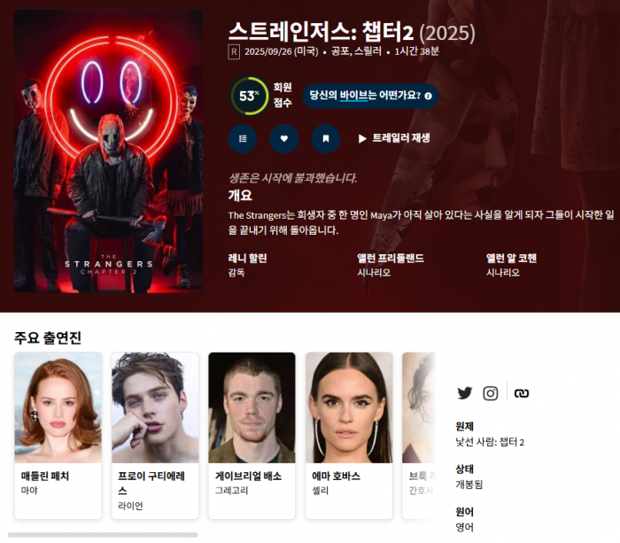 [한글자막] 10월자막 북미개봉 마야가살아있다 스뜨레인저챕터2 초고화질 1080p