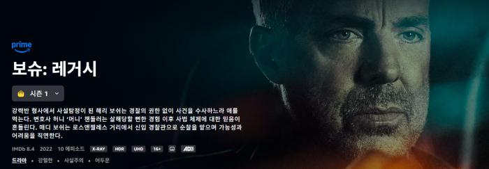 | - 보슈 레거시 Bosch Legacy S01E04 Horseshoes and Hand Grenades 1080p.WEB-DL.HEVC.x265.EAC3.mkv | 1.8 G | MKV | - | 1920x1080 |