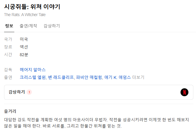 [공식자막] 11월5일 액션판타지 위처스핀옵 시궁쥐들 위쳐이야기 초고화질 1080p/