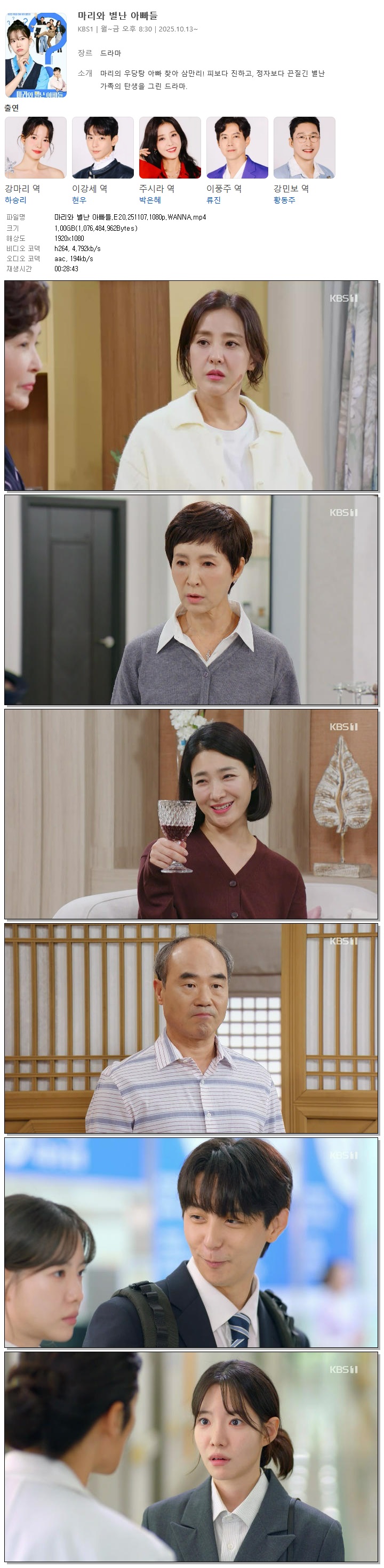 [KBS1] 마리와 별난 아빠들.E20.251107.1080p.WANNA[하승리, 현우]