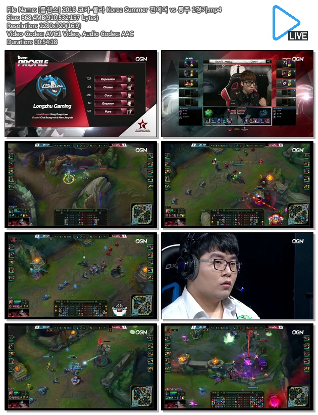 [롤챔스] 2016 코카-콜라 Korea Summer 진에어 vs 롱주 1경기.mp4