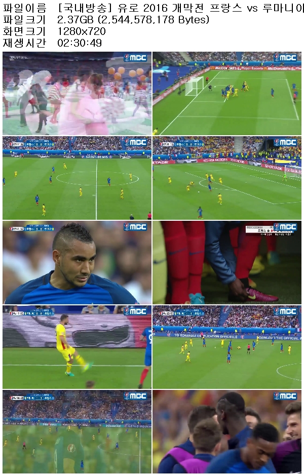 [국내방송] 유로 2016 개막전 프랑스 vs 루마니아 160611 [고화질]/
