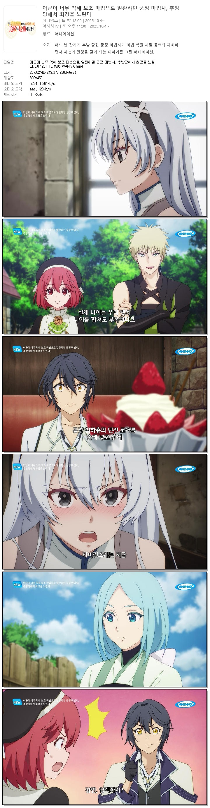 아군이 너무 약해 보조 마법으로 일관하던 궁정 마법사, 추방당해서 최강을 노린다.E07.251116.450p.WANNA