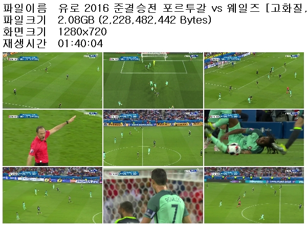 유로 2016 준결승전 포르투갈 vs 웨일즈 [고화질,720P].avi 2.1 G AVI 01:40:04 1280x720
