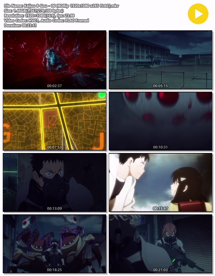 | Kaijuu 8 Gou - 06 [BDRip 1920x1080 x265 FLAC].mkv | 1.5 G | MKV | 00:23:41 | 1920x1080 |