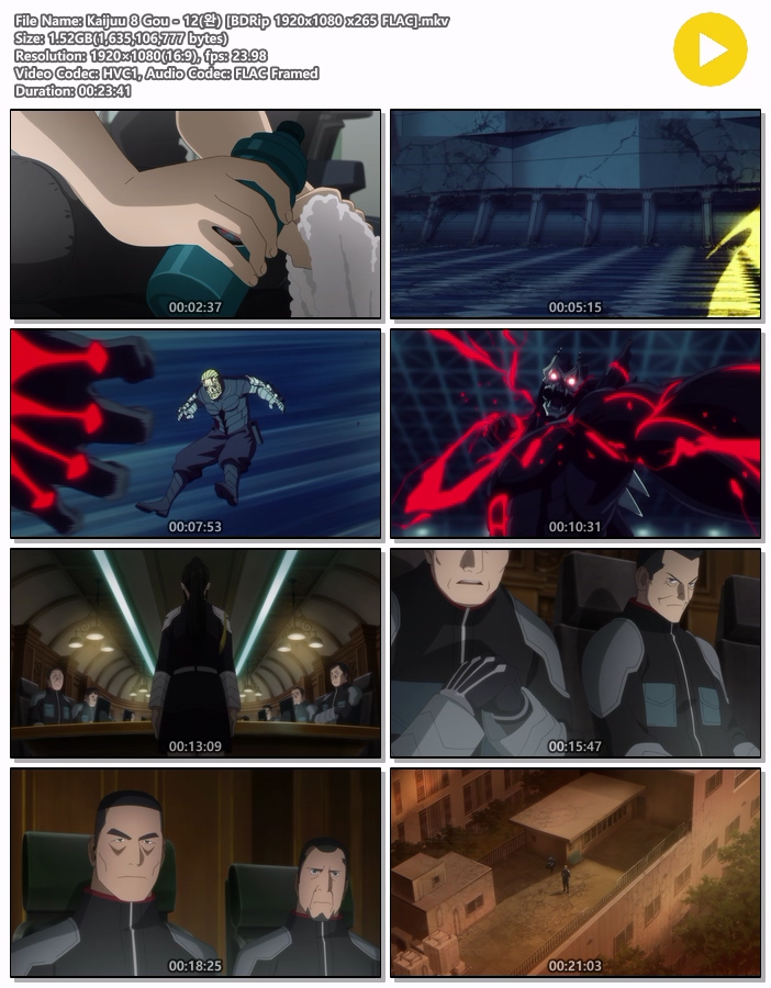 | Kaijuu 8 Gou - 12(완) [BDRip 1920x1080 x265 FLAC].mkv | 1.5 G | MKV | 00:23:41 | 1920x1080 |