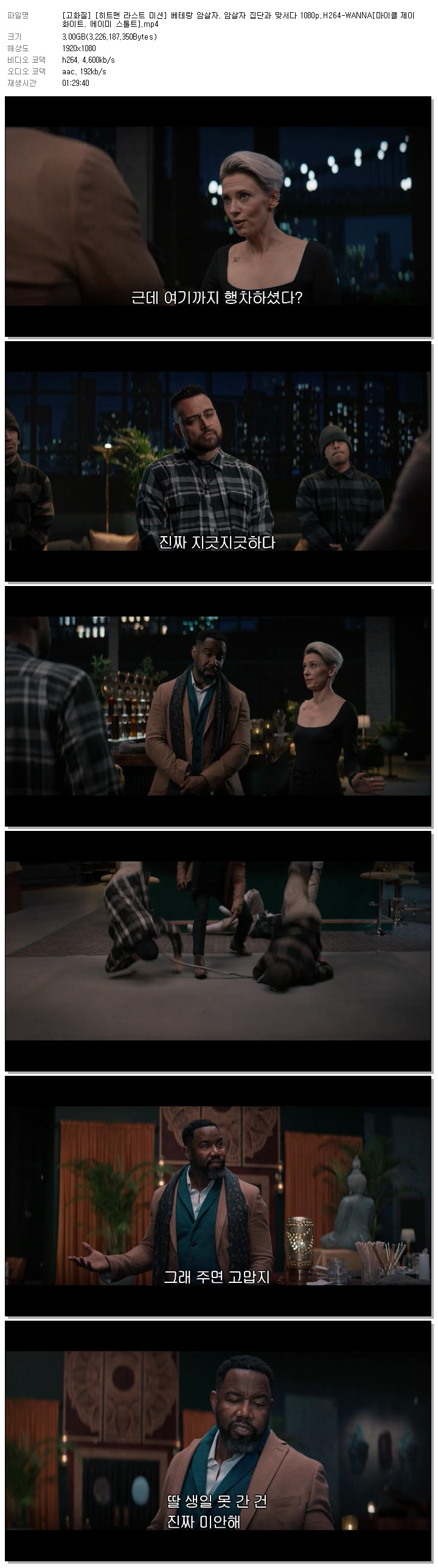 [고화질] [히트맨 라스트 미션] 베테랑 암살자, 암살자 집단과 맞서다 1080p.H264-WANNA[마이클 제이 화이트, 에이미 스톨트].mp4 3 G MP4 01:29:40 1920x1080
