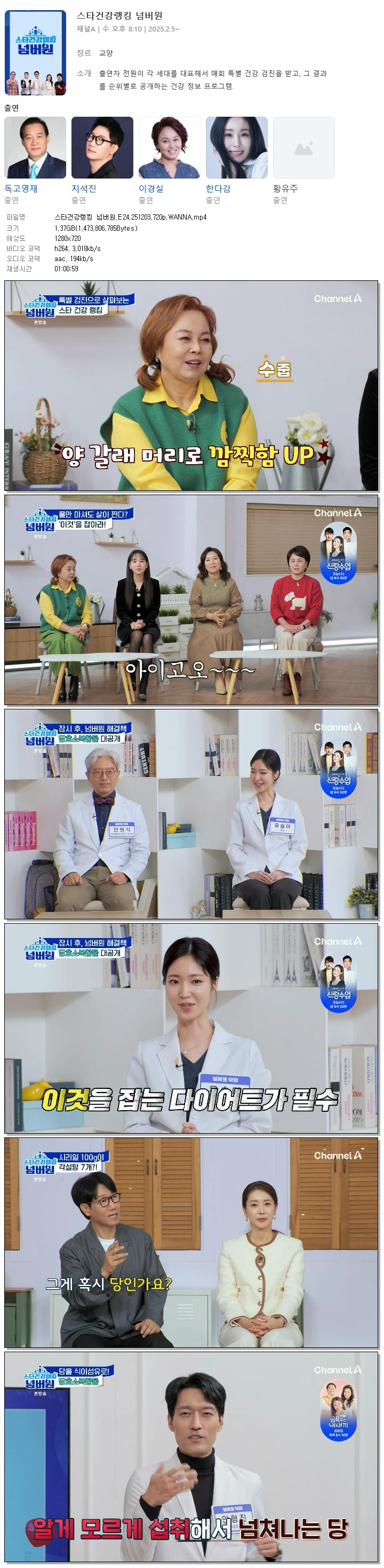 [채널A] 스타건강랭킹 넘버원.E24.251203.720p.WANNA[지석진, 이경실]
