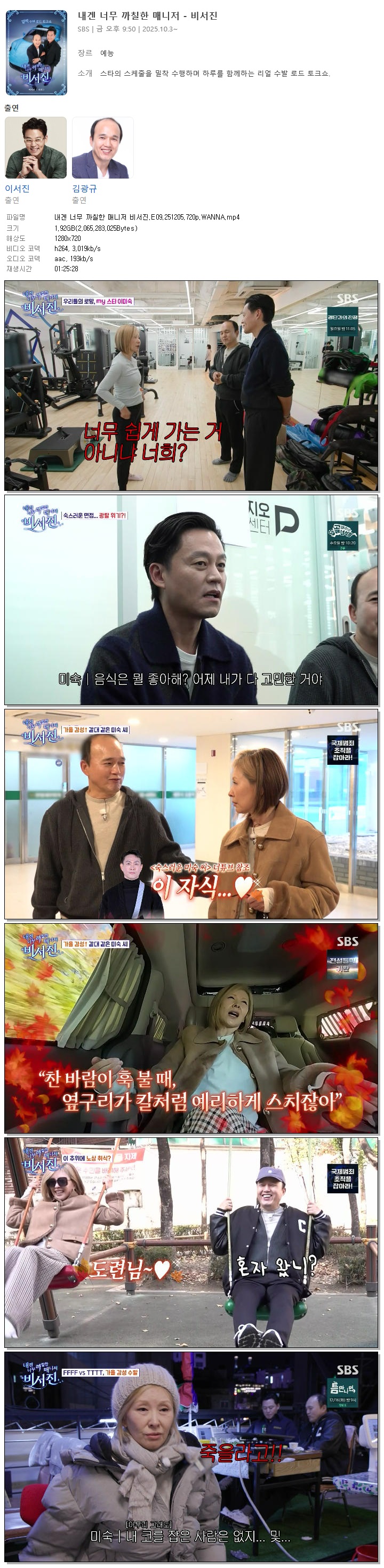 [SBS] 내겐 너무 까칠한 매니저 비서진.E09.251205.720p.WANNA[이미숙].mp4 1.9 G MP4 01:25:28 1280x720