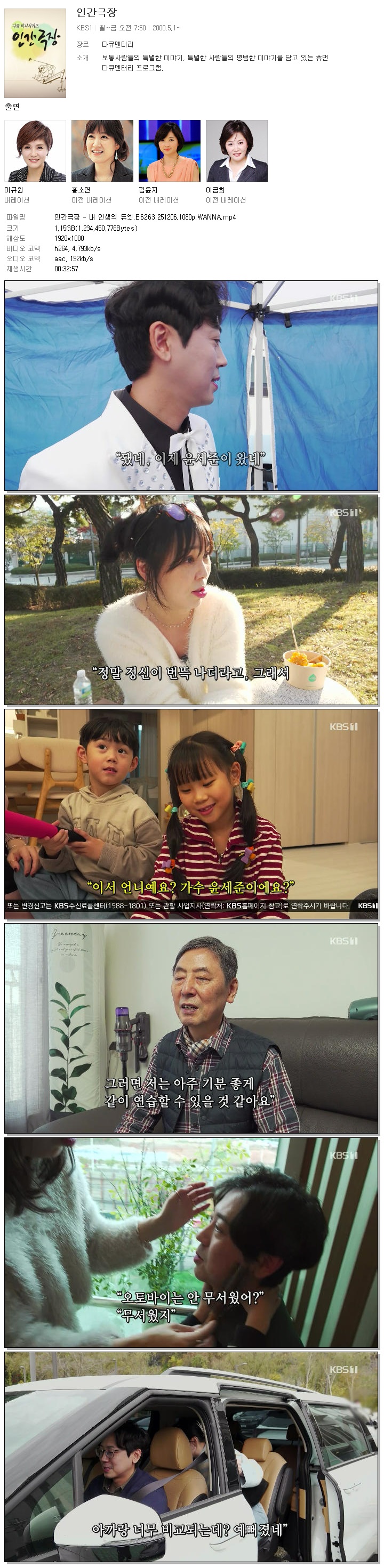 [KBS1] 인간극장.E6263.251206.1080p.WANNA.mp4 1.1 G MP4 00:32:57 1920x1080