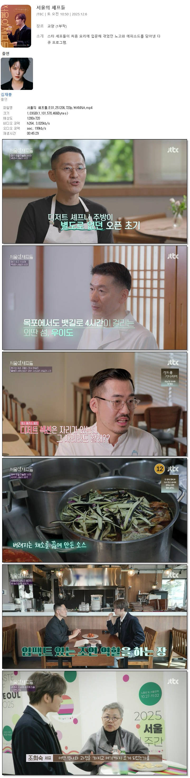 [JTBC] 서울의 셰프들.E01.251206.720p.WANNA[김재중]