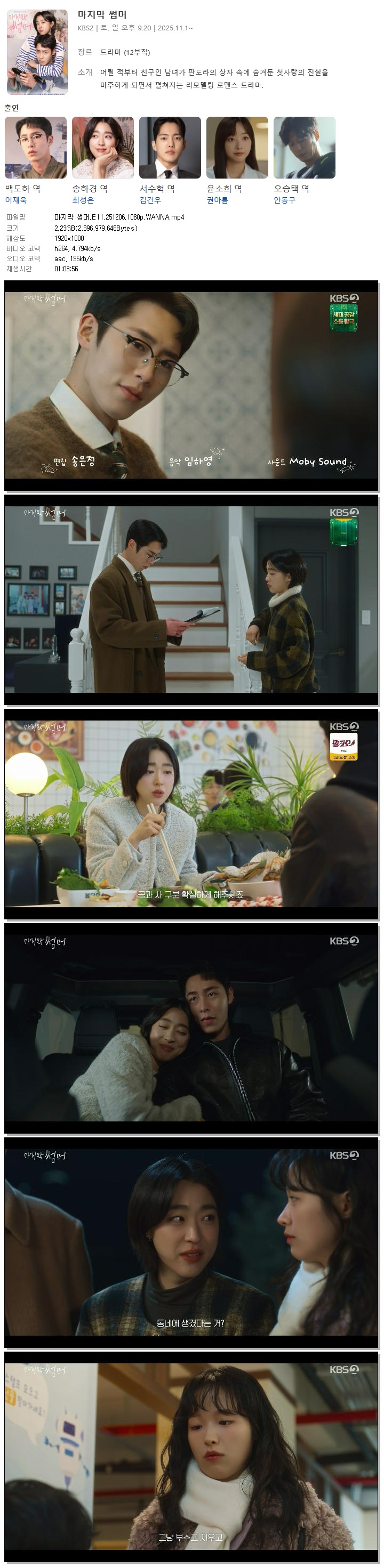 [KBS2] 마지막 썸머.E11.251206.1080p.WANNA[이재욱, 최성은].mp4 2.2 G MP4 01:03:56 1920x1080