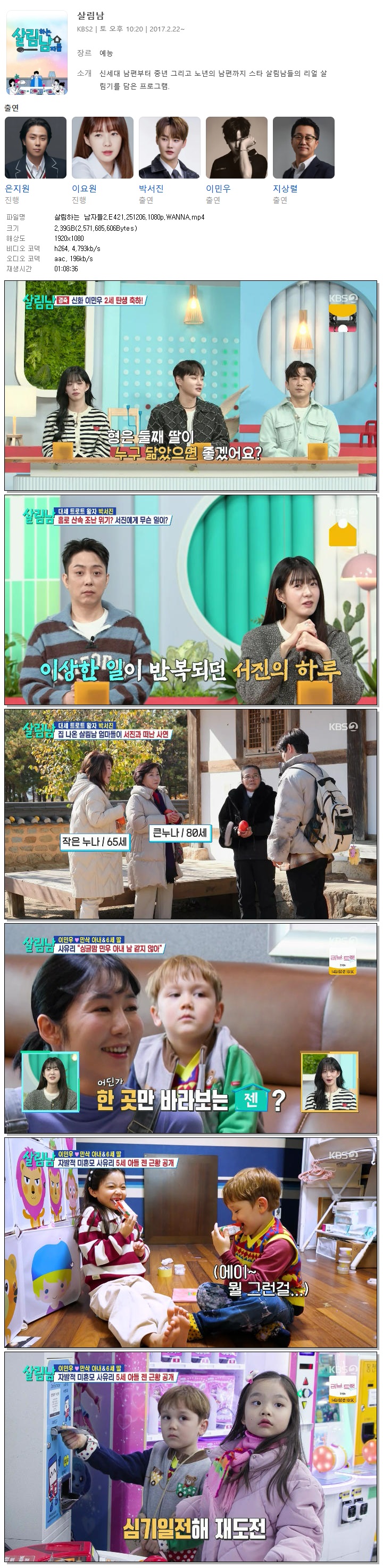[KBS2] 살림하는 남자들2.E421.251206.1080p.WANNA[박서진, 이민우]