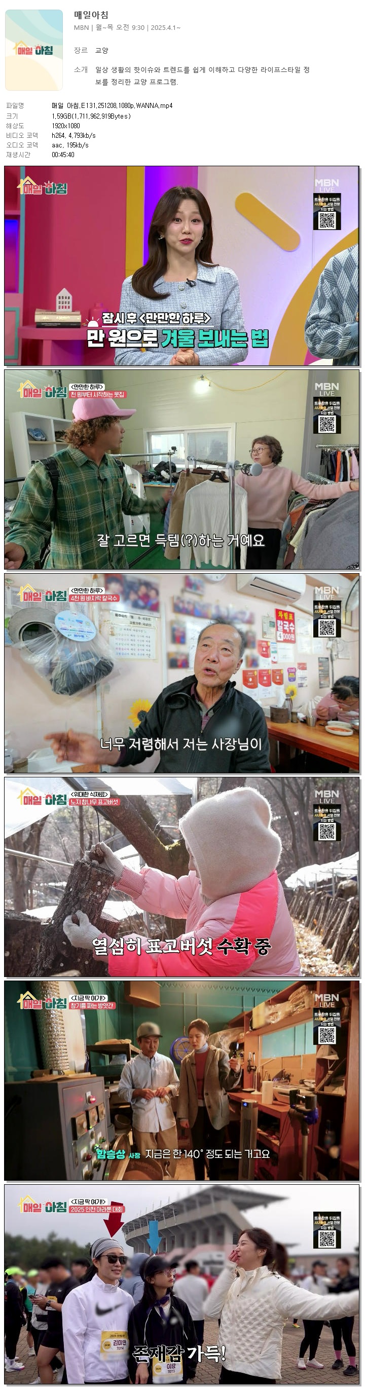 [MBN] 매일 아침.E131.251208.1080p.WANNA[한혜원, 이정수]