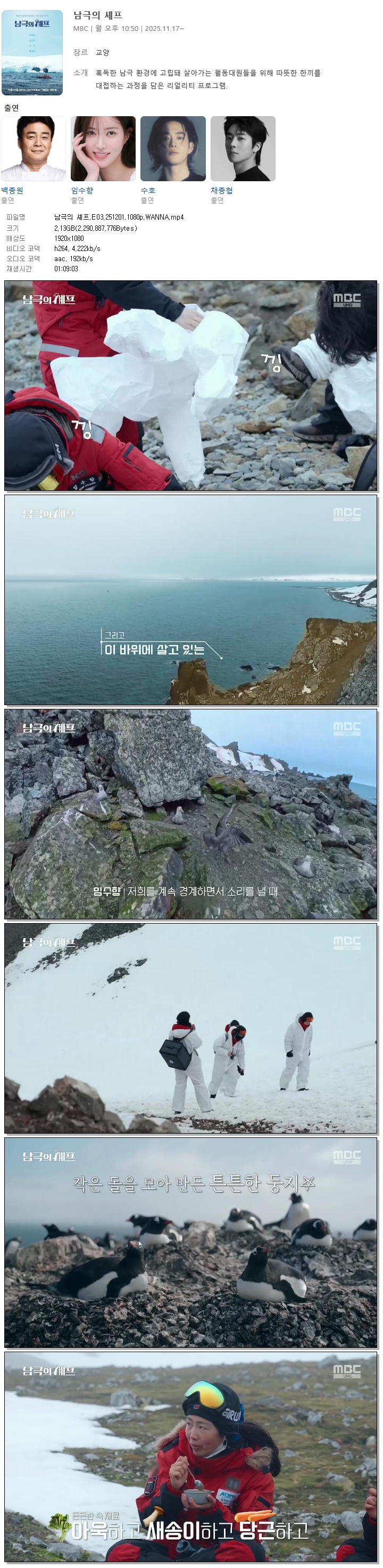 [MBC] 남극의 셰프.E03.251201.1080p.WANNA[백종원, 임수향]