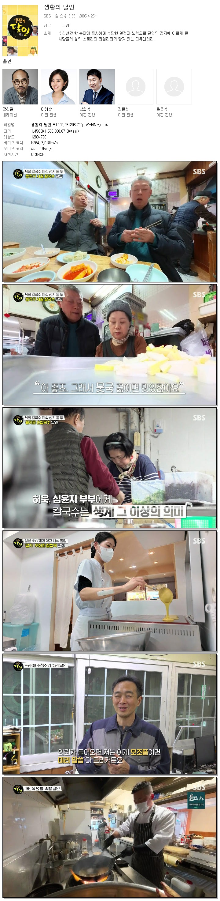 [SBS] 생활의 달인.E1009.251208.720p.WANNA.mp4 1.5 G MP4 01:04:34 1280x720