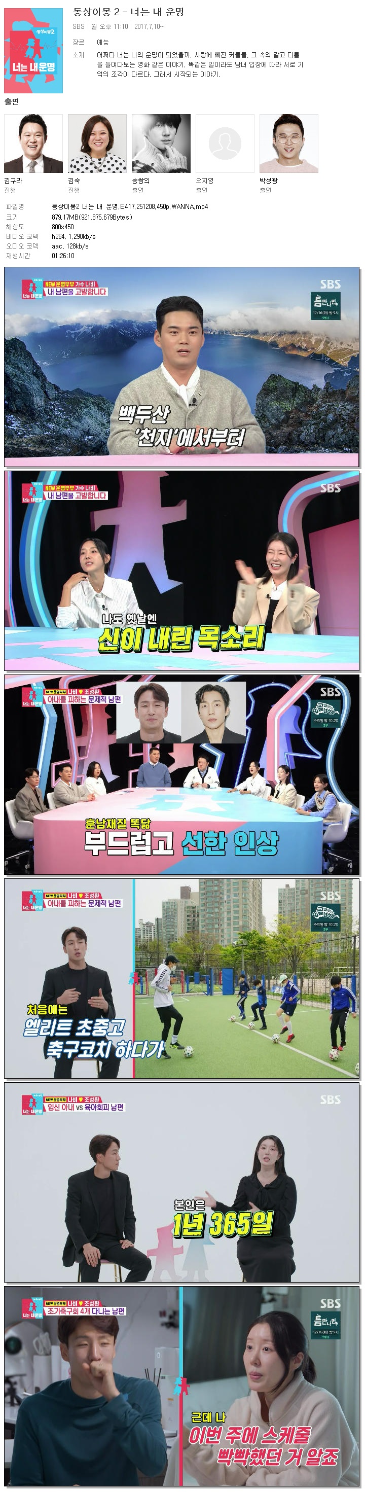 [SBS] 동상이몽2 너는 내 운명.E417.251208.450p.WANNA[천록담, 나비].mp4 879.2 M MP4 01:26:10 800x450