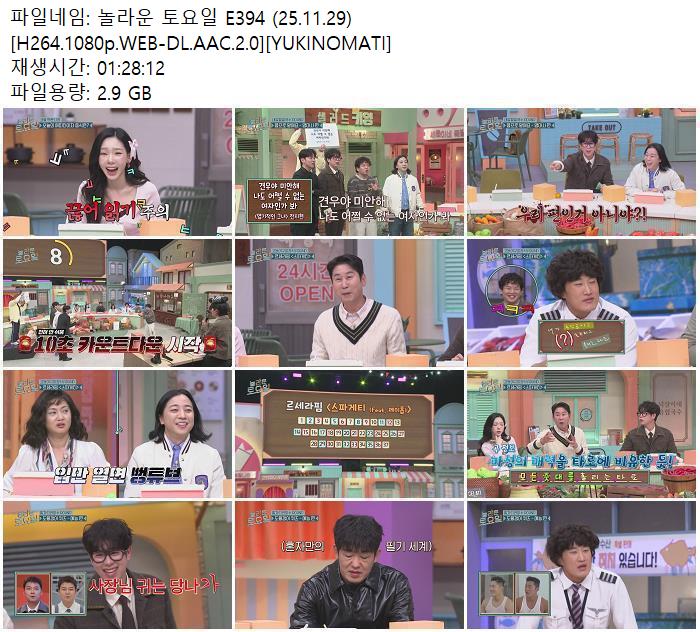 놀라운 토요일 E394 (25.11.29) [H264.1080p.WEB-DL.AAC.2.0][YUKINOMATI].mkv 2.9 G MKV - 1920x1080