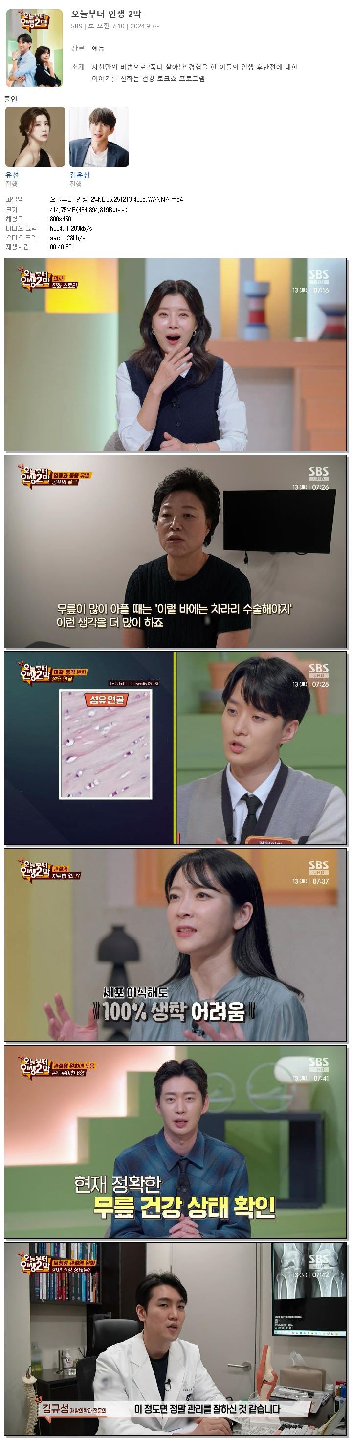 [SBS] 오늘부터 인생 2막.E65.251213.450p.WANNA[유선, 김현진].mp4 414.7 M MP4 00:40:50 800x450
