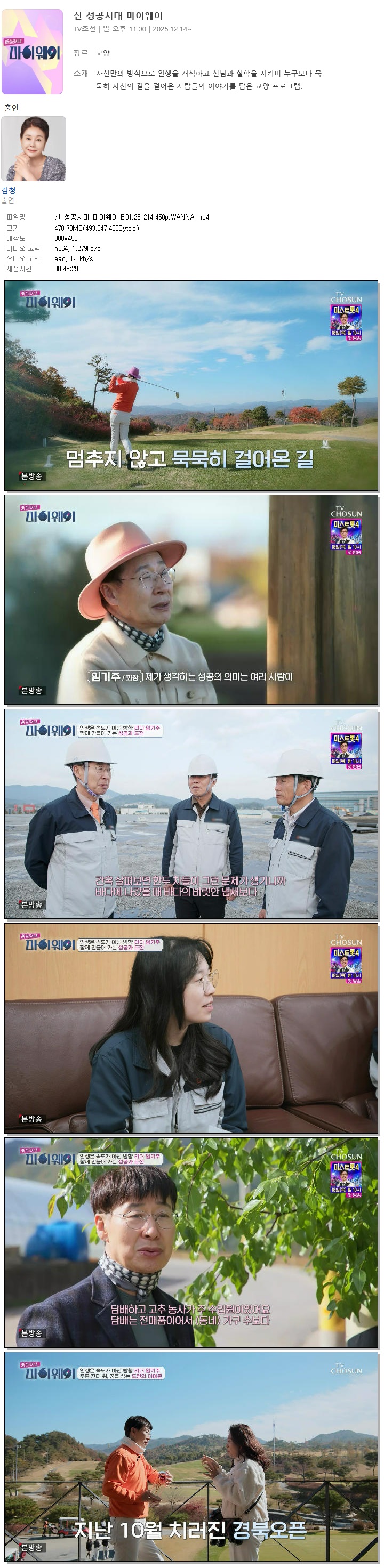 [TV조선] 신 성공시대 마이웨이.E01.251214.450p.WANNA[김청]