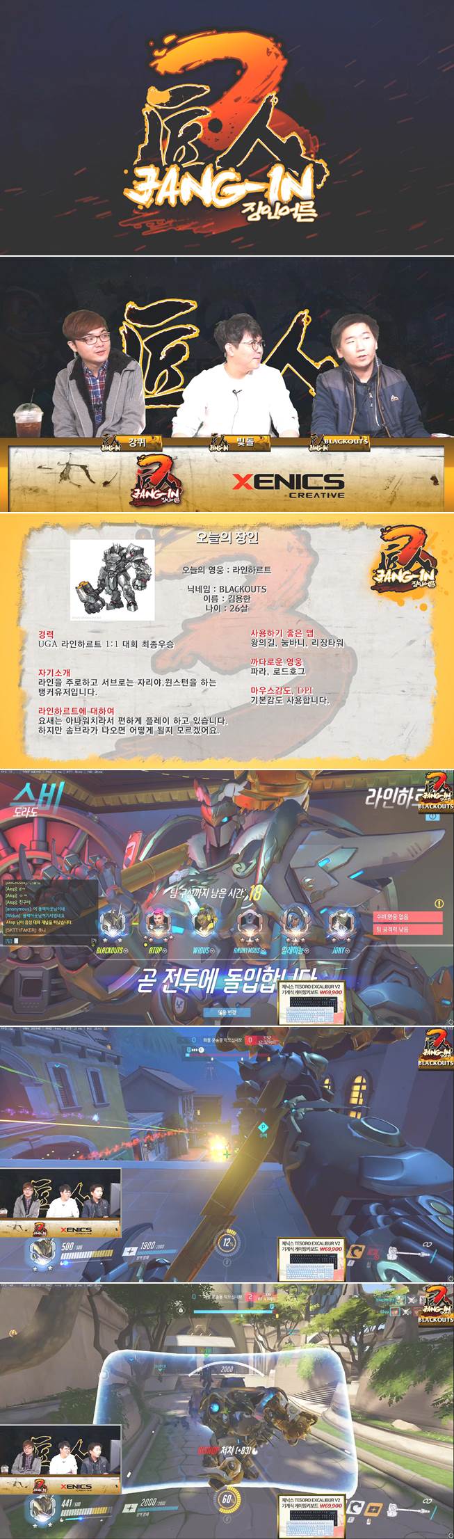 제닉스 장인어른 시즌3! 44화 1부오늘의 장인오늘의 영웅 : 라인하르트닉네임 : blackouts이름: 김용한나이: 26살경력uga 라인하르트 1:1 대회 최종우승자기소개라인을 주로하고 서브로는 자리야,윈스턴을 하는탱커유저입니다.