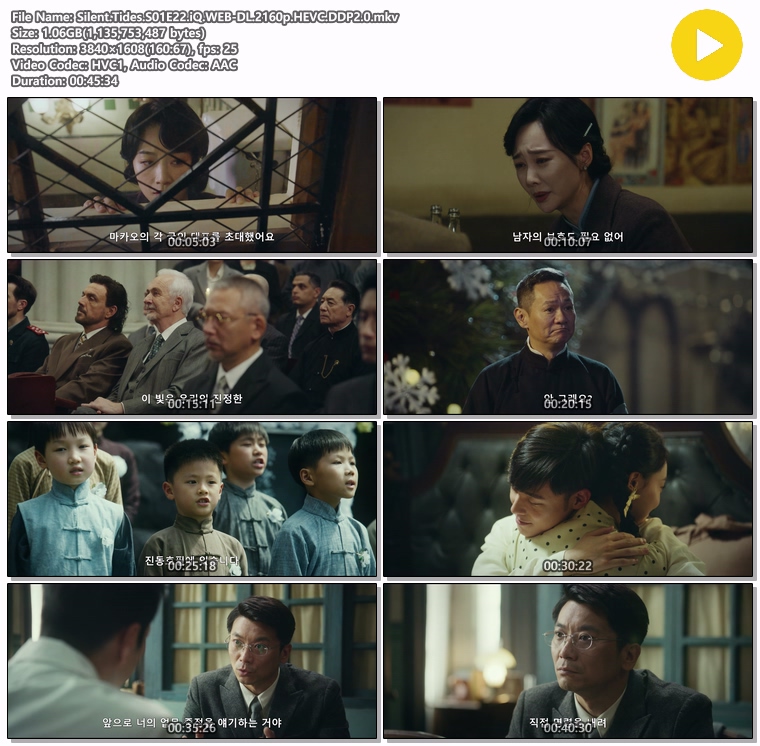 | Silent.Tides.S01E23.iQ.WEB-DL.2160p.HEVC.DDP2.0.mkv | 1.1 G | MKV | 00:45:34 | 3840x1608 |