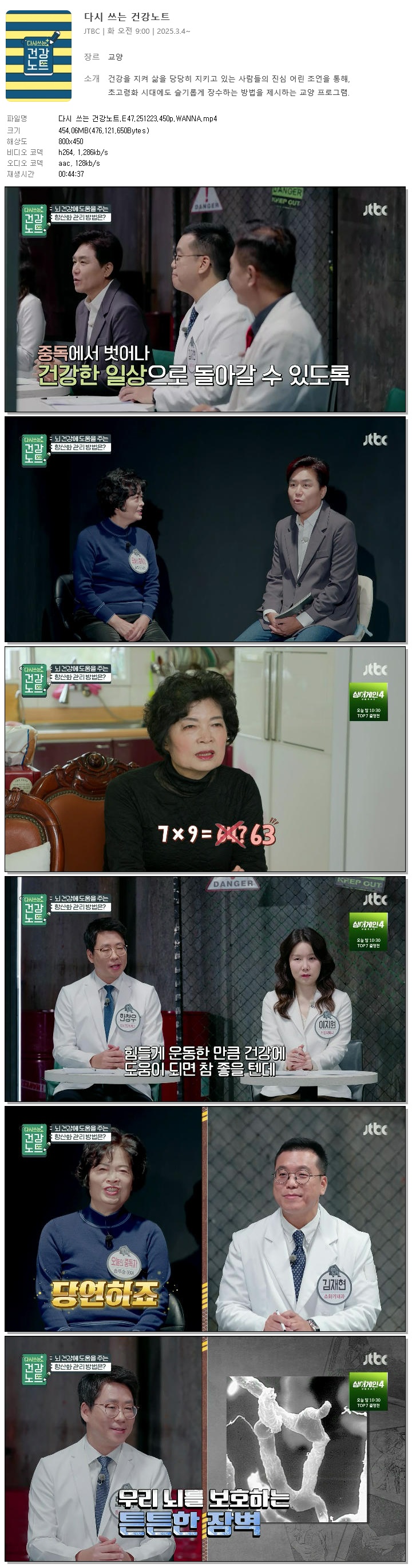 [JTBC] 다시 쓰는 건강노트.E47.251223.450p.WANNA
