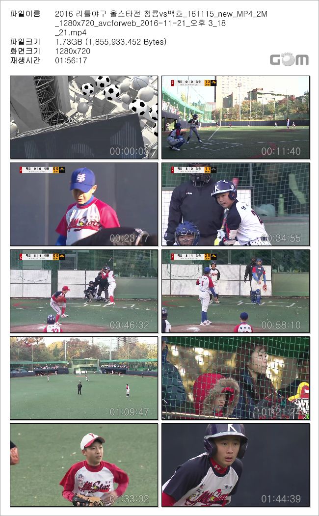 2016 리틀야구 올스타전 청룡vs백호_161115_new_MP4_2M_1280x720_avcforweb_2016-11-21_오후 3_18_21.mp4 1.7 G MP4 01:56:17 1280x720
