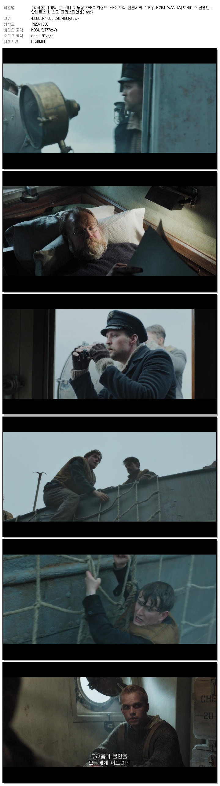 | [고화질] [아틱 콘보이] 가능성 ZERO 위험도 MAX 오직 전진하라 1080p.H264-WANNA[토비아스 산텔만, 안데르스 바스모 크리스티안센].mp4 | 4.6 G | MP4 | 01:49:00 | 1920x1080 |