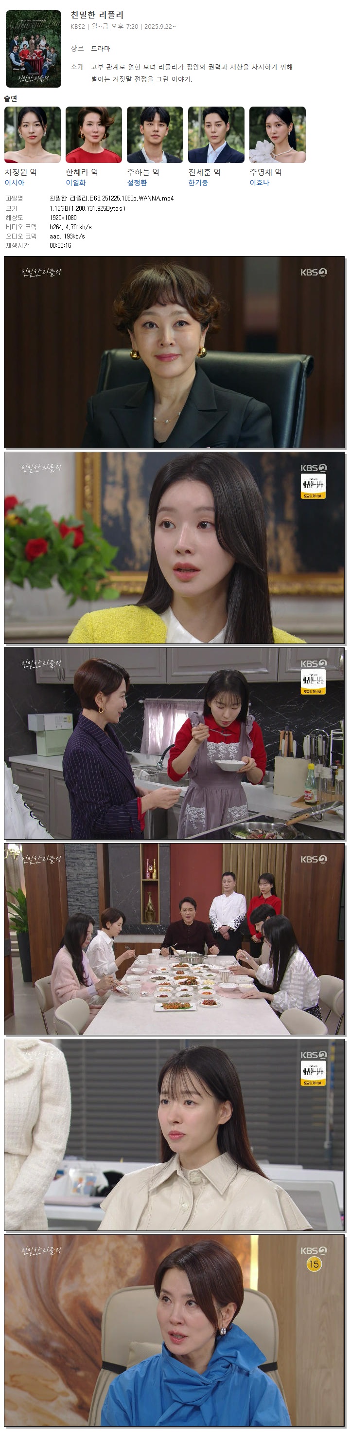 [KBS2] 친밀한 리플리.E63.251225.1080p.WANNA[이시아, 이일화]