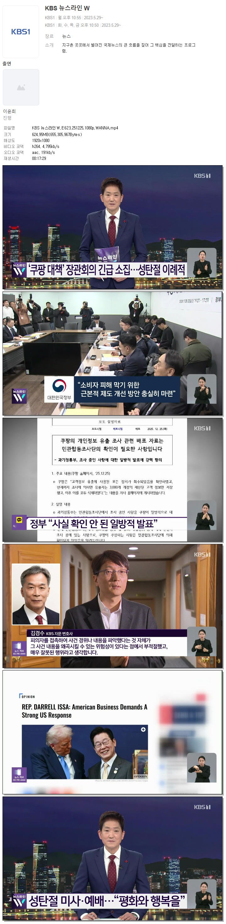 [KBS1] KBS 뉴스라인W.E623.251225.1080p.WANNA