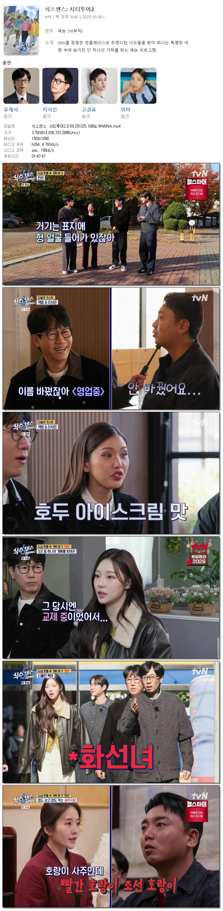 [TVN] 식스센스 시티투어2.E09.251225.1080p.WANNA[곽범, 이시안]