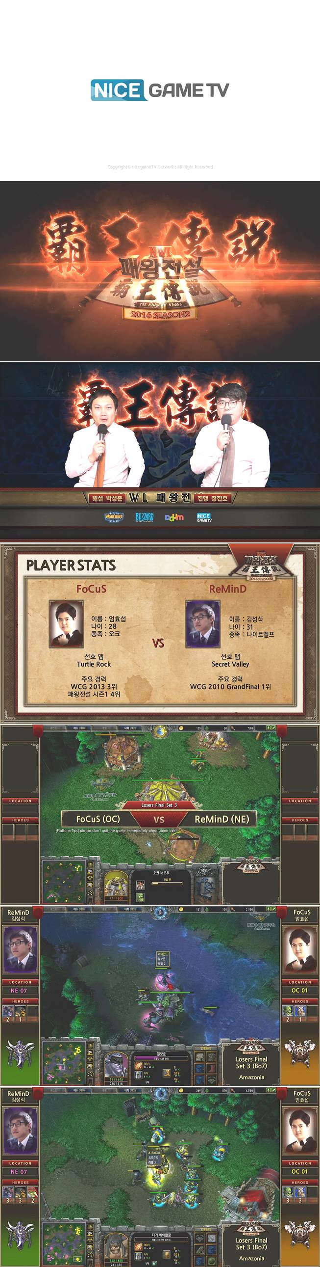 NWL 패왕전설 시즌2 Day13 매치1 3경기focus(오크) vs remind(나이트엘프)overview-일정2016.11.1~2016.11.25(17:00 다음팟tv팟 독정중계)16강 더블엘리미네이션 토너먼트-상금/ 총상금 1,000만원