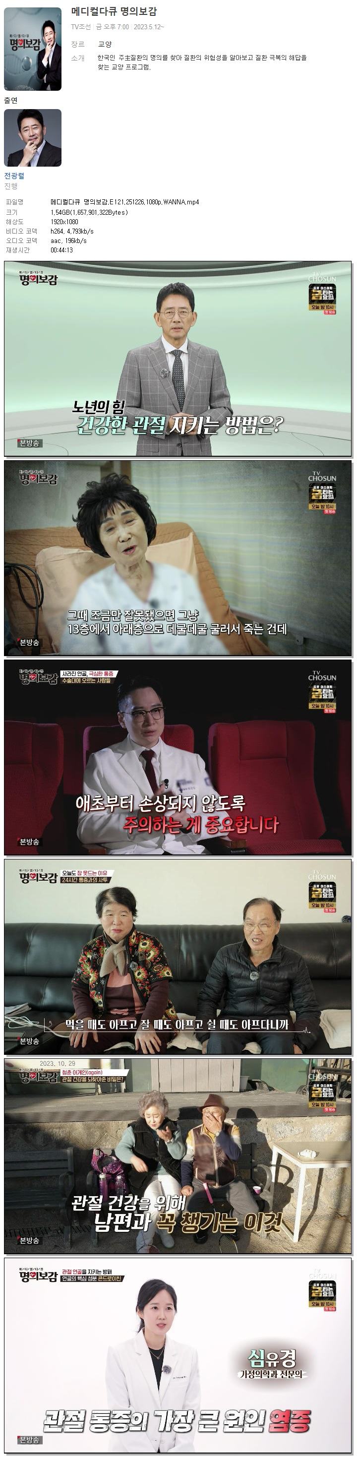 [TV조선] 메디컬다큐 명의보감.E121.251226.1080p.WANNA[전광렬].mp4 1.5 G MP4 00:44:13 1920x1080