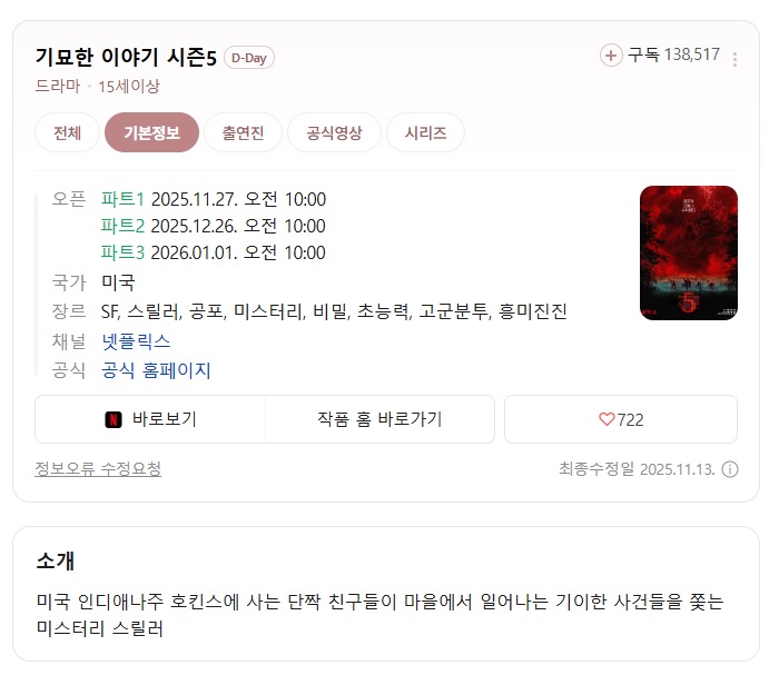 [기묘한 이야기 시즌5] 파트2 초저용량 1080P 자체자막/