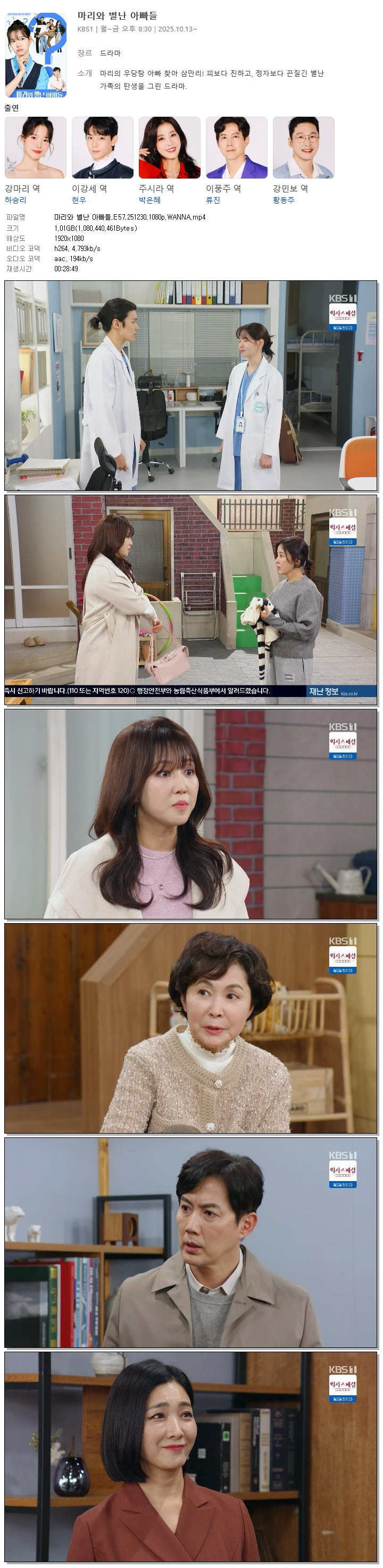 [KBS1] 마리와 별난 아빠들.E57.251230.1080p.WANNA[하승리, 현우]