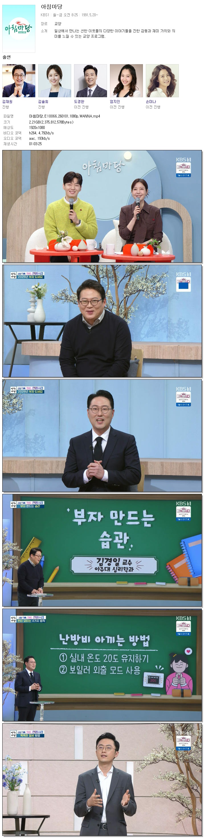 [KBS1] 아침마당.E10066.260101.1080p.WANNA[엄지인, 박철규]