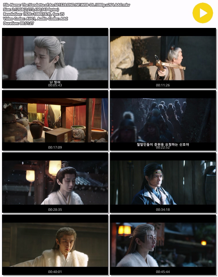 | The.Vendetta.of.An.S01E28.END.NF.WEB-DL.1080p.x264.AAC.mkv | 2.1 G | MKV | 00:51:27 | 1920x1080 |